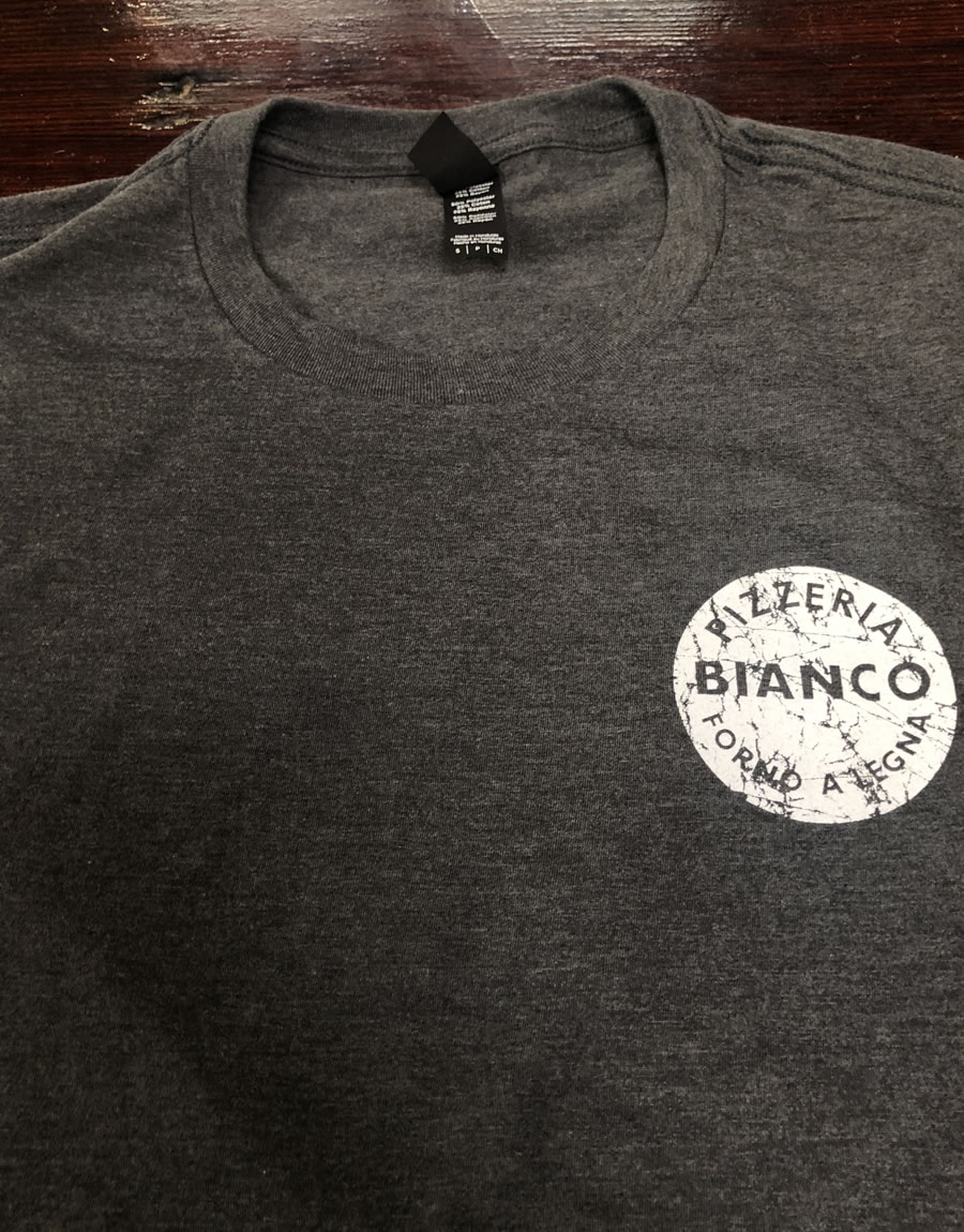 The original Pizzeria Bianco circle logo, now as a t-shirt! Sporting the logo on the left chest and on the back, this is a great gift for loved ones or yourself. Support your your favorite restaurant in this comfortable t-shirt.